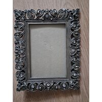 Silberfarbener Bilderrahmen mit Steinen zum Hinstellen.