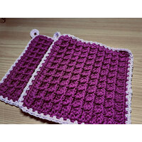 Ein paar Topflappen mit Aufhängern im schönen und stabilen Waffelmuster gehäkelt. 100% Baumwolle ... mehr