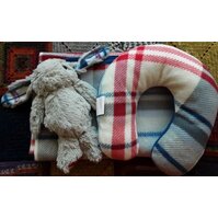 dazu gibt es eine Schlummerrolle mit einer karierten und einer blauen Seite