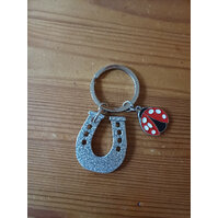 Schlüsselanhänger mit einem Marienkäfer und einem Hufeisen. Das Hufeisen hat auf der Rückseite die Beschriftung viel Glück. ... mehr