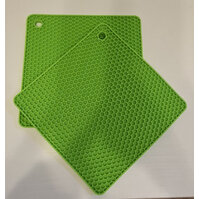 2 dicke Silikon-Topflappen bzw. Topfuntersetzer mit Wabenstruktur und Aufhängeöse. Stammen aus einem Nachlass. Sind vermutlich von Kochblume, da ... mehr