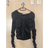 schwarzes Crop-Top mit einem mit Strasssteinchen besetzten Band, das man zum Schließen durchfädeln kann ... mehr