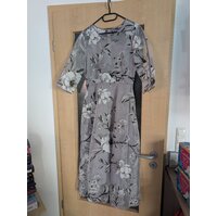 silbergraues Unterkleid mit transparentem, blütenbedrückten Stoff darüber