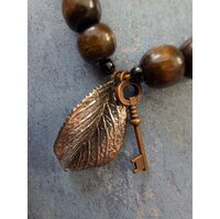eckige und rundliche Perlen in Grün-Gelb-Braun-Tönen, dzwischen goldene und silberne Zwischenelemente