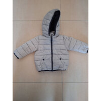 Graue Steppjacke mit dunkelblauen Fleece-Innenfutter in Größe 78cm / 9-12 Monate von Zara. Die Kapuze kann über Druckknöpfen abgenommen ... mehr