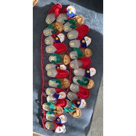 Adventskalender aus Filz an einer geflochtenen Kordel zum Aufhängen. Mit 24 Hausschuhen - Puschen in verschiedenen Designs.