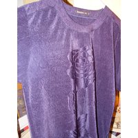 Mitternachtsblaues Halbarmshirt; Größe L (44/46), in sich gemustertes Vorderteil - Rosenmotiv, ansonsten in Rippenstruktur, die sich nach Bedarf ... mehr