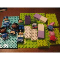 Es sind eine ca. DINA6 Platte, 1 etwas kleinere dickere und 2 kleine dicke, 7 Bausteine und 5 Tierfiguren - Schwein, Frosch und Bären sowie 3 ... mehr