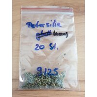Krause Petersilie, mit meinen nicht filigranen Fingern abgefüllt und daher garantiert mehr als 20 Körner ;-) ... mehr