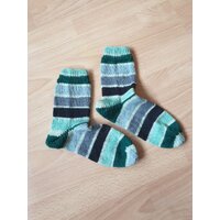 Aus 4fädigem Sockengarn mit Bumerangferse und Bandspitze ... mehr