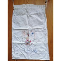 schöner alter Baumwollstoff, zu einem Wäschebeutel handgenäht und in vielen Stunden bestickt - Schularbeit meiner Mutter