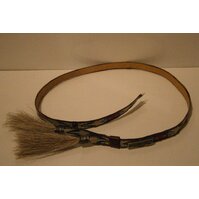 Hutband, bunter Stoff mit Leder und zwei Quasten. Das Teil muß festgenäht oder mit Schnüren verbunden werden, die entsprechenden Stanzlöcher sind ... mehr