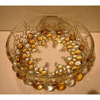 Glasschale, rund, Durchmesser etwa 18 cm, mit einem transparent-gelben Blasenmuster. Möglicherweise Walther-Glas, etwa aus den 80er ... mehr