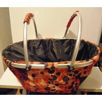 Einkaufskorb, faltbar, Standardgröße, bunt gemustert, mit schwarzem Regenschutz. ... mehr