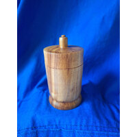 Salzstreuer aus Buchenholz gedrechselt, schöne Maserung, an der Unterseite befindet sich eine Kappe, die zum Einfüllen des Salzes abgenommen ... mehr