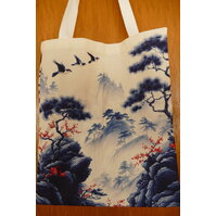 Geisha Kirschblüten Design Beutel aus mit dem Motiv bedrucktem Polyester Stoff.