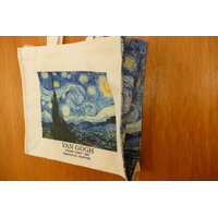 Stoff Einkaufstasche mit beidseitigem und randständigen Motiv Sternennacht - Starry Night vin Vincent van Gogh.