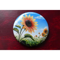 2 wunderschöne Glas Magneten / Klebe Button Landschaft mit Gobelinstickerei 3D Effekt