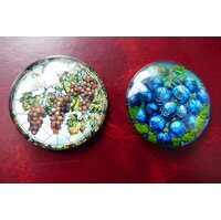 2x Glas Kühlschrank Magnet Klebe Buttons Weintrauben + Heidelbeeren