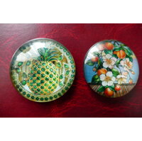2x Glas Kühlschrank Magnet Klebe Buttons Ananas + Aprikosenstrauch