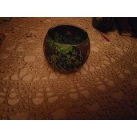 Gruen-buntes Glas für Teelichter, gekauft auf dem Weihnachtsmarkt. ... mehr