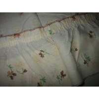 auf hellem Grund in Baumwollmischgewebe gemaltes Motiv, Volant 130 cm breit 25 cm hoch, zwei Gardinchen je 70 cm breit und 75 cm hoch - leichtes ... mehr