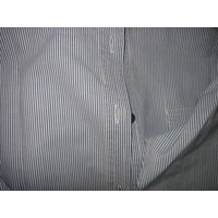 klassische Hemdbluse mit Stehkragen und einer Brusttasche mit Knopf, blau-weiß schmal gestreift (Metzger-Streifen), die Bluse hat am hinteren unteren ... mehr