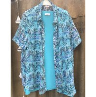 Set Bluse transparent und ärmelloses Top in Blau-Türkistönen .