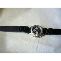 Ideales Geschenk: sehr schöne Herrenarmbanduhr mit schwarzem Zifferblatt silbernen Zahlen. Gesamtdurchmesser des Zifferblattes ist 4 cm. Kunststoff ... mehr