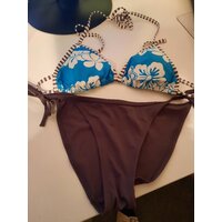 gut erhaltener Bikini von Tribord in türkis/braun mit floralem Muster in der Größe 36/38-