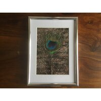 Glitzerbild mit echter Pfauenfeder auf schwarzem Tonkarton,von mir kreiert,Bilderrahmen aus silberfarbenem Kunststoff mit Kunststoffscheibe,Bilderrahm  ... mehr