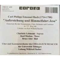 Analog-Stereo-Aufnahme von 1970 Solisten: Charlotte Lehmann, Sopran - Karl Markus. Tenor - Bruce Abel, Bass Mit ausführlichem ... mehr