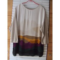 Schönes, leichtes Langarmshirt mit Streifen in Beige-, Braun- und Rottönen. Länge ca. 63 cm, von Achsel zu Achsel ca. 58 cm. Material unbekannt, da ... mehr