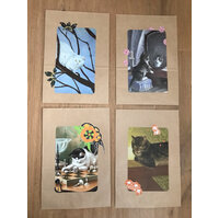 4 große, robuste Tüten mit Katzenmotiv. Mit historischer Holzwäscheklammer zum Verschließen.