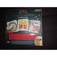 Diamond Painting, Packung mit 3 Weihnachtskarten, mit Umschlägen, Steinchen, Schiffchen, Wachs und Stift. Maße der Karten: 18 x 18 cm.