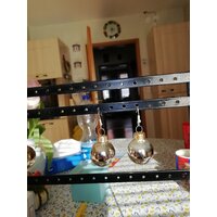 Ein Paar Ohrringe mit Weihnachtskugeln, ganz hell goldfarben glänzend, Durchmesser 3 cm, von mir frisch zusammengebastelt. Ohrhaken sind ... mehr