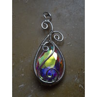 Für diesen Anhänger habe ich silberfarbenen Schmuckdraht verarbeitet. Dre Glasstein im Innern schimmert je nach Lichteinfall in den ... mehr