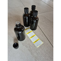 Vier Tropfflaschen jeweils 100 ml aus braunglas. Neu, mit Etiketten. Versand gut verpackt u d versichert mit Hermes ... mehr