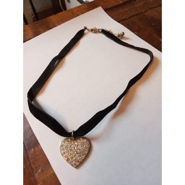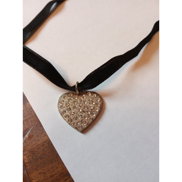 nd, schwarzes Samtband mit einem mit Glitzersteinchen besetzten Herz. Karabinerverschluss, das Band kann von je nach Halsdicke von 38 bis 44 cm