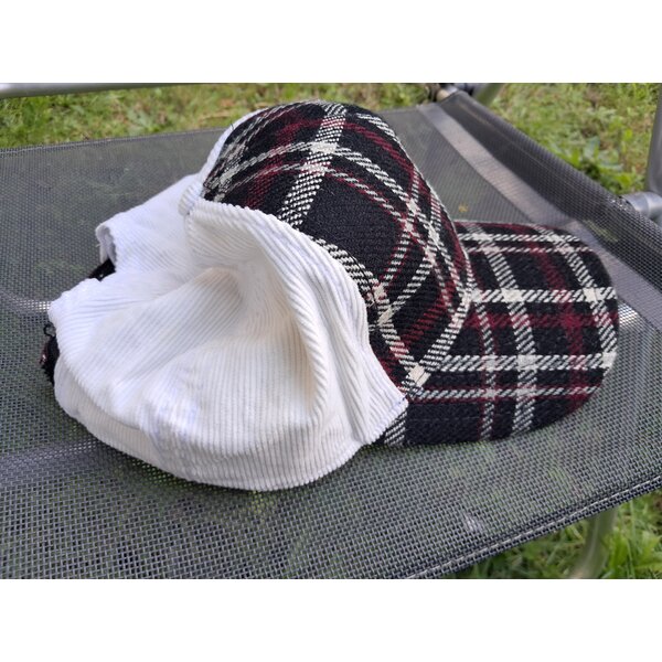Biete hier eine schöne Schirmmütze von New Era. Sie hat einen Materialmix aus Kord und Stoff und ist weiß mit weinrot-schwarzen Karos.
