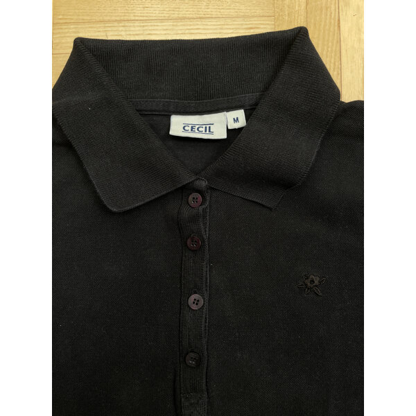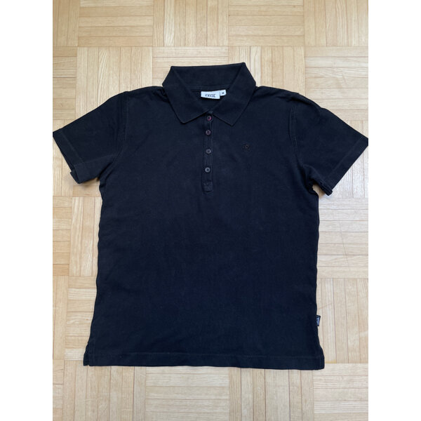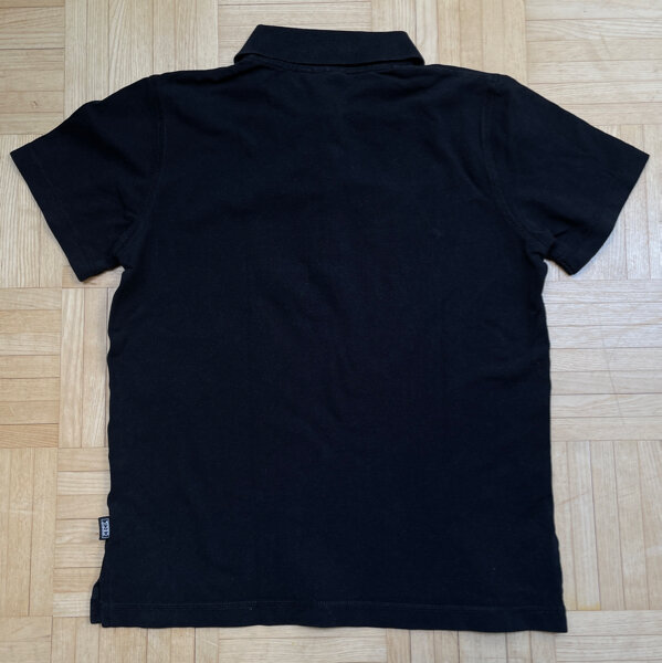 klassisches Poloshirt mit normalen (eher leichten) Gebrauchs- bzw. Waschspuren; Materialschild ist leider nicht mehr zu lesen, ist aber ziemlich sicher aus Baumwolle mit Elasthan-Anteil (weil stretchig)