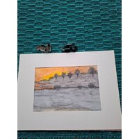 Landschaft, Aquarell, Passepartout, orange, grau gelb 2:1 Artikel