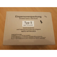 Einpersonenpackung der Bundeswehr. Typ 5 =Vegetarisch. Vorgesehen für die Versorgung von einem Soldaten für einen Tag. Ideal auch für outdoor ... mehr
