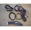 grün-rosé/beige marmorierte Perlen mit silbernen Saturnringen