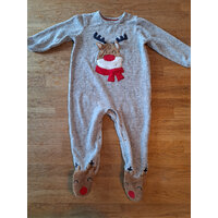 Schöner Strampler/Schlafanzug mit weihnachtlichen Elch/Rentier Motiv auf der Brust und an den Füßen. Der Schlaf ist aus weicher, etwas aufgerauter ... mehr