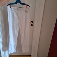 Gr. 40 - fällt meist etwas kleiner aus, weiße lange Hose, mit Logo in Silber, Gesamtlänge ca. 100 cm, Breite im Bund ca. 38 (lässt sich noch etwas ... mehr