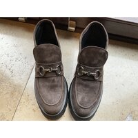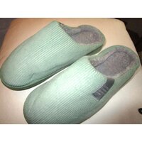 Hausschuhe aus türkis-grünem Cord mit Kunstfellfutter. Mir sind sie leider etwas zu groß, Rücksendung lohnt sich nicht. Angegeben ist die ... mehr