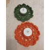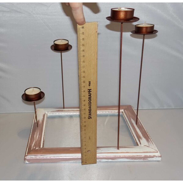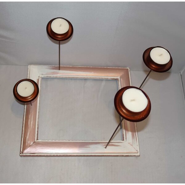 es handelt sich um einen alten Bilderrahmen, der zunächst weiß gestrichen und mit einem Hauch rosegoldfarbenem lack aufgewertet wurde. Die Löcher wurden geboht, um die neugekauften Teelichthalter fassen zu können. Die Teelichthalter sind neu und bronzefarben, passen farblich sehr gut. Sie sind unterschiedlich hoch.