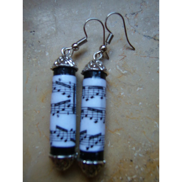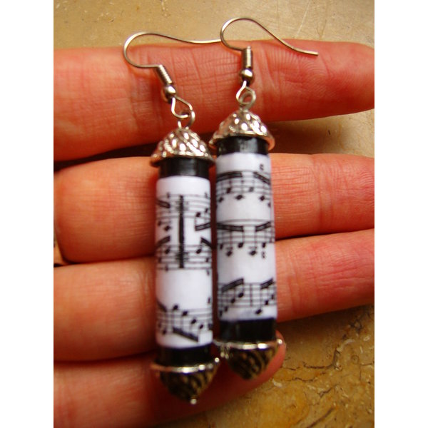 Ohrringe mit Noten, die ich in einem aufwändigen Verfahren von Hand gefertigt habe. Die Ohrhaken sind laut Hersteller nickelfrei.
