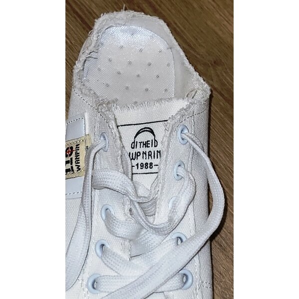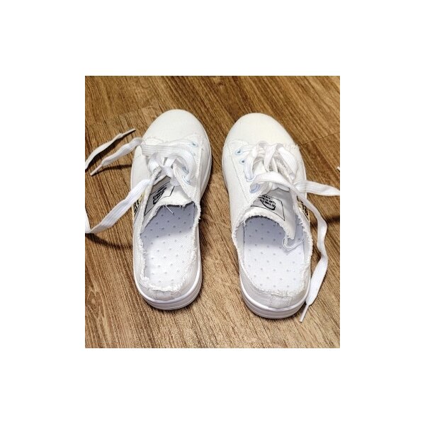 neue lässige weisse Slip-On Low-Top Leinen Sneaker Gr. 35 - Atmungsaktives Stoffobermaterial, Robuste PVC-Sohle, Runde Zehenpartie, hinten offen, mit Schnürung, Label seitlich, PVA-Einlegesohle - Fußlänge ca. 22,5cm